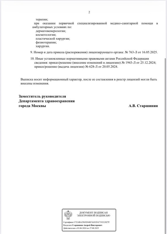 Я также выражаю признательность всем сотрудникам клиники, которые остались за кадром, но внесли свой неоценимый вклад в мой положительный опыт. Ваша слаженная работа, преданность делу и стремление к совершенству заслуживают искреннего восхищения.