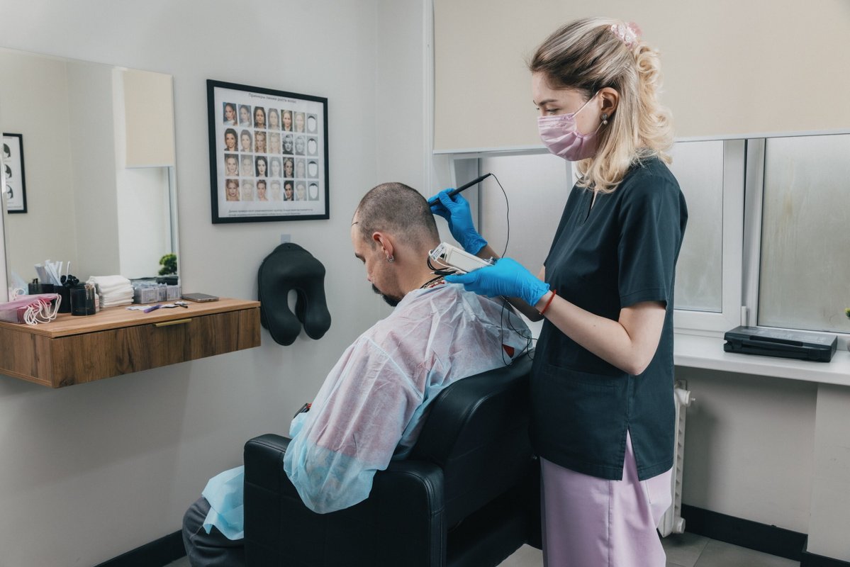 Делал пересадку 02.11.2025, примерно 3300 графтов в зоне лба и макушки. Главный страх был — это боль, но на деле всё терпимо, самый неприятный момент — уколы анестезии, потом только ощущаешь прикосновения. Команда постоянно спрашивала, не нужно ли добавить анестезию, нужен ли перерыв. К обеду уже чуть устал лежать, но включили фильм, стало легче. Вечером выдали сумку с уходом, подробно ещё раз проговорили рекомендации. Пока всё идёт по плану, надеюсь увидеть красивую линию роста через несколько месяцев.