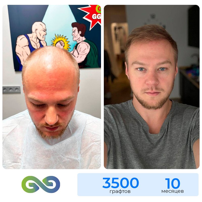Выбрал GG Med, потому что важна была естественность и аккуратность. Врач пояснил, как подбирают направление роста и плотность, и это мне понравилось. Во время процедуры чувствовал себя комфортно, постоянно спрашивали про самочувствие. Сейчас примерно на 5-м месяце — выглядит всё довольно гармонично.
